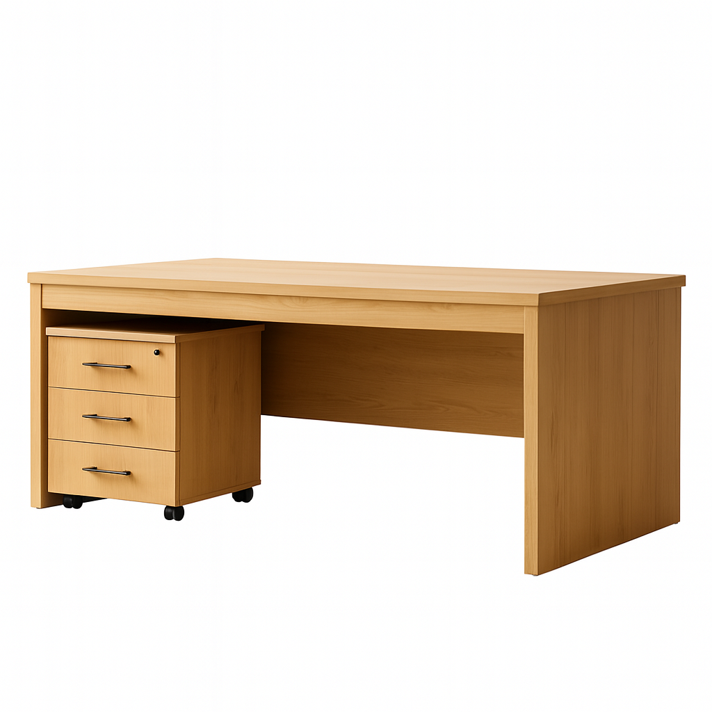 Desk 180×80×75 cm + Mobile Drawer Unit – Beige – AZ50028