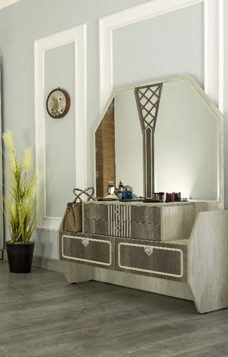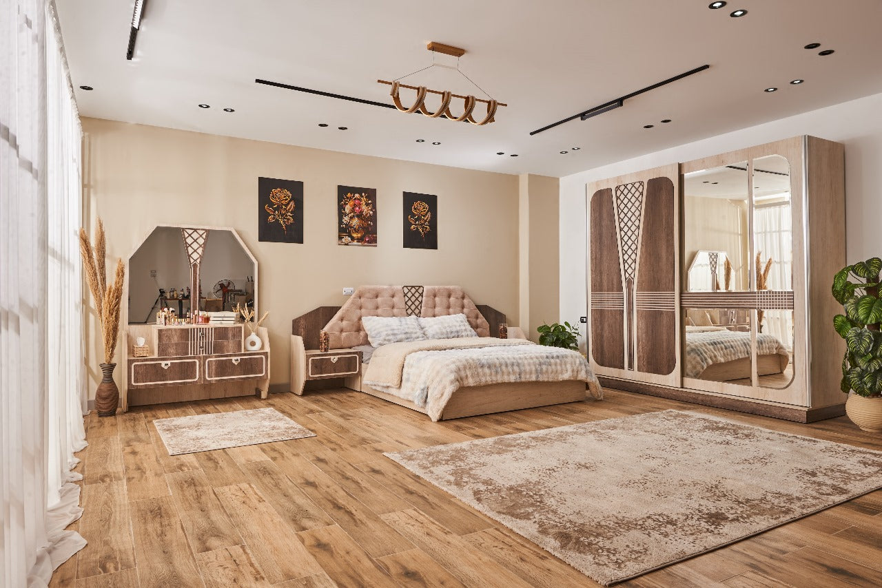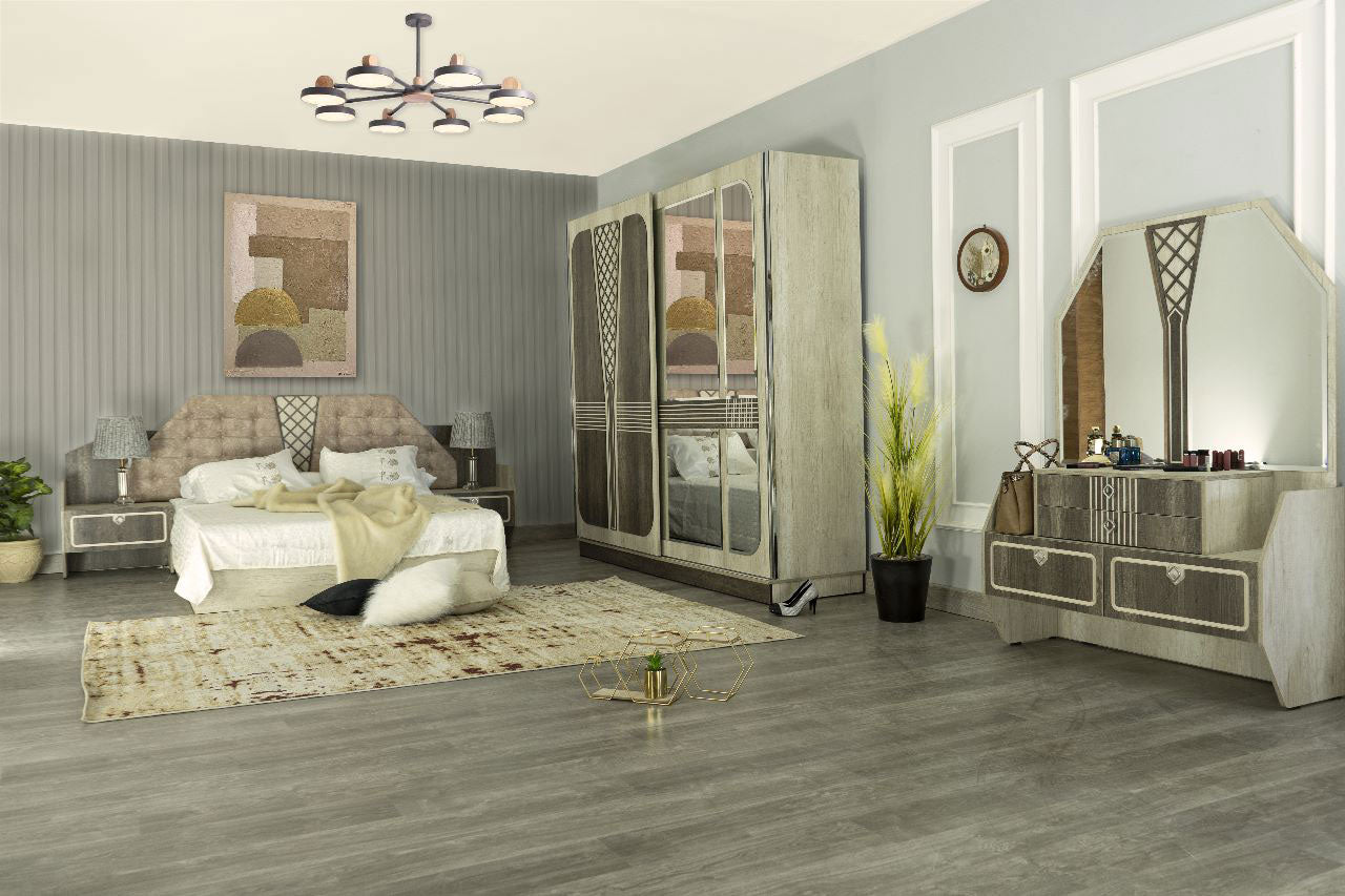 Nevada Bedroom (Melamine MDF Panels) – Bed 160 cm, Dresser 120 cm, 2 Nightstands 55 cm, Wardrobe 245 cm