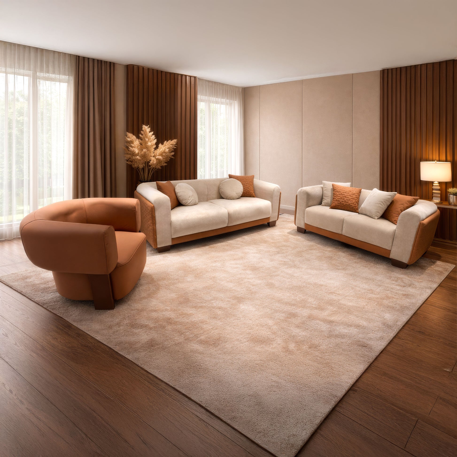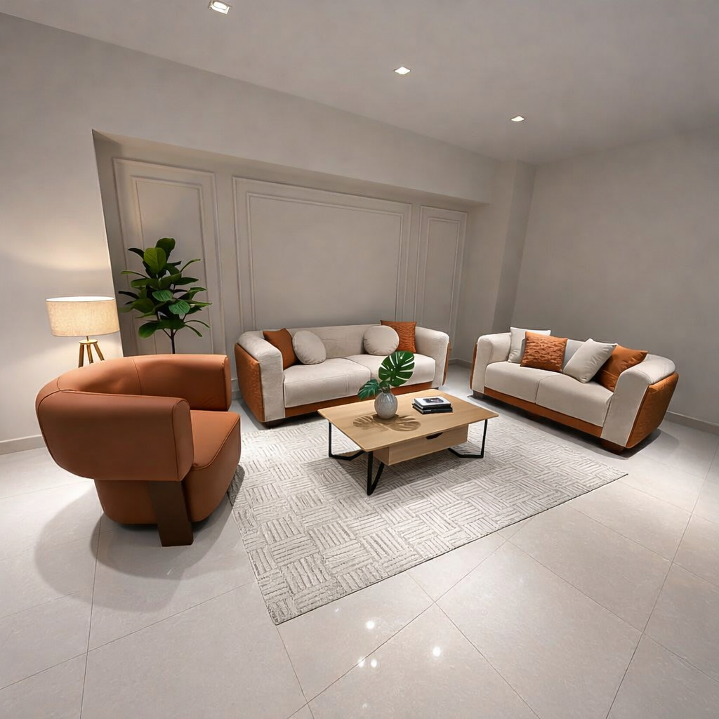انتريه مودرن 3 قطع (خشب أبلكاش، خشب زان وخشب موسكي) – اللون: بيج وبرتقالي – 2518