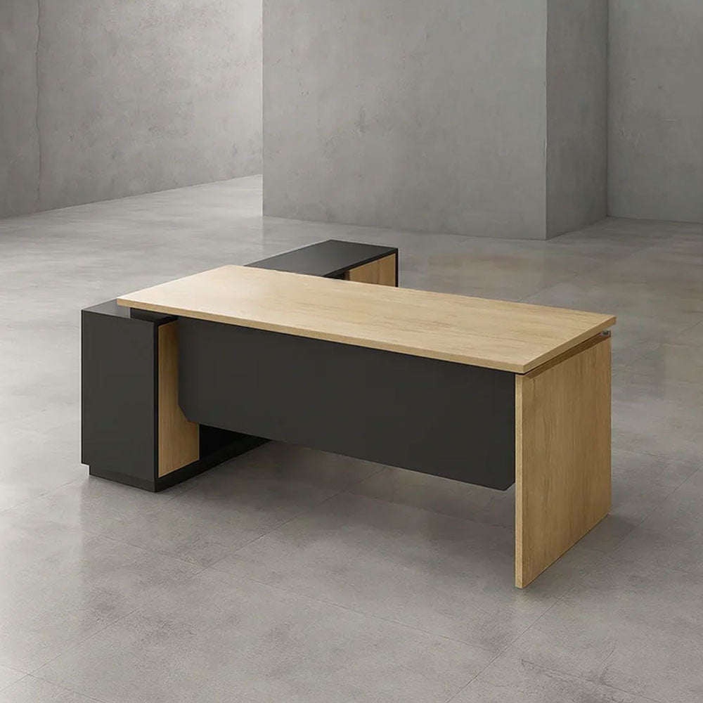 مكتب 160×160×75 سم + سايد – خشبي و رمادي – AZ120117