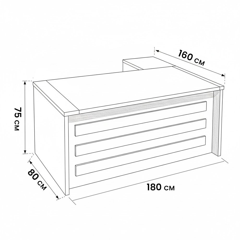 العمق الكلي (المكتب + السايد): 160 سم