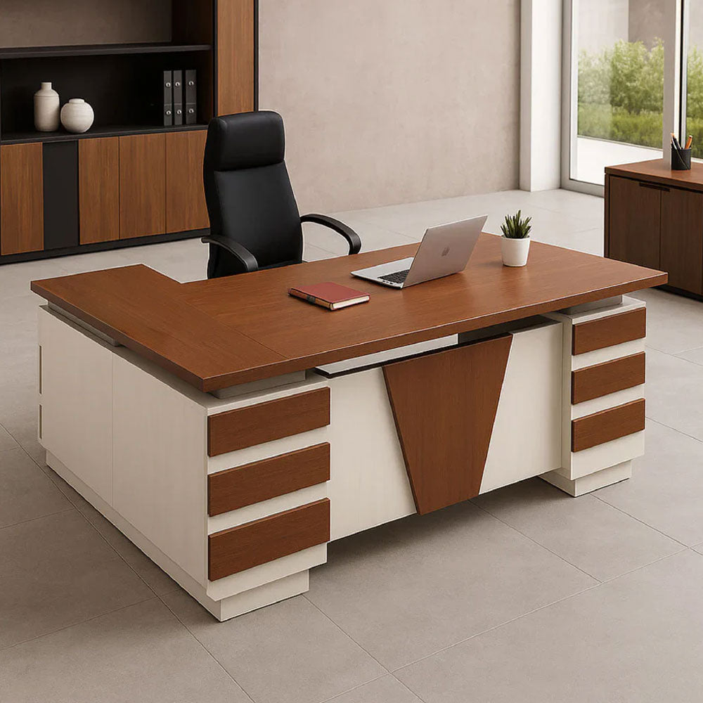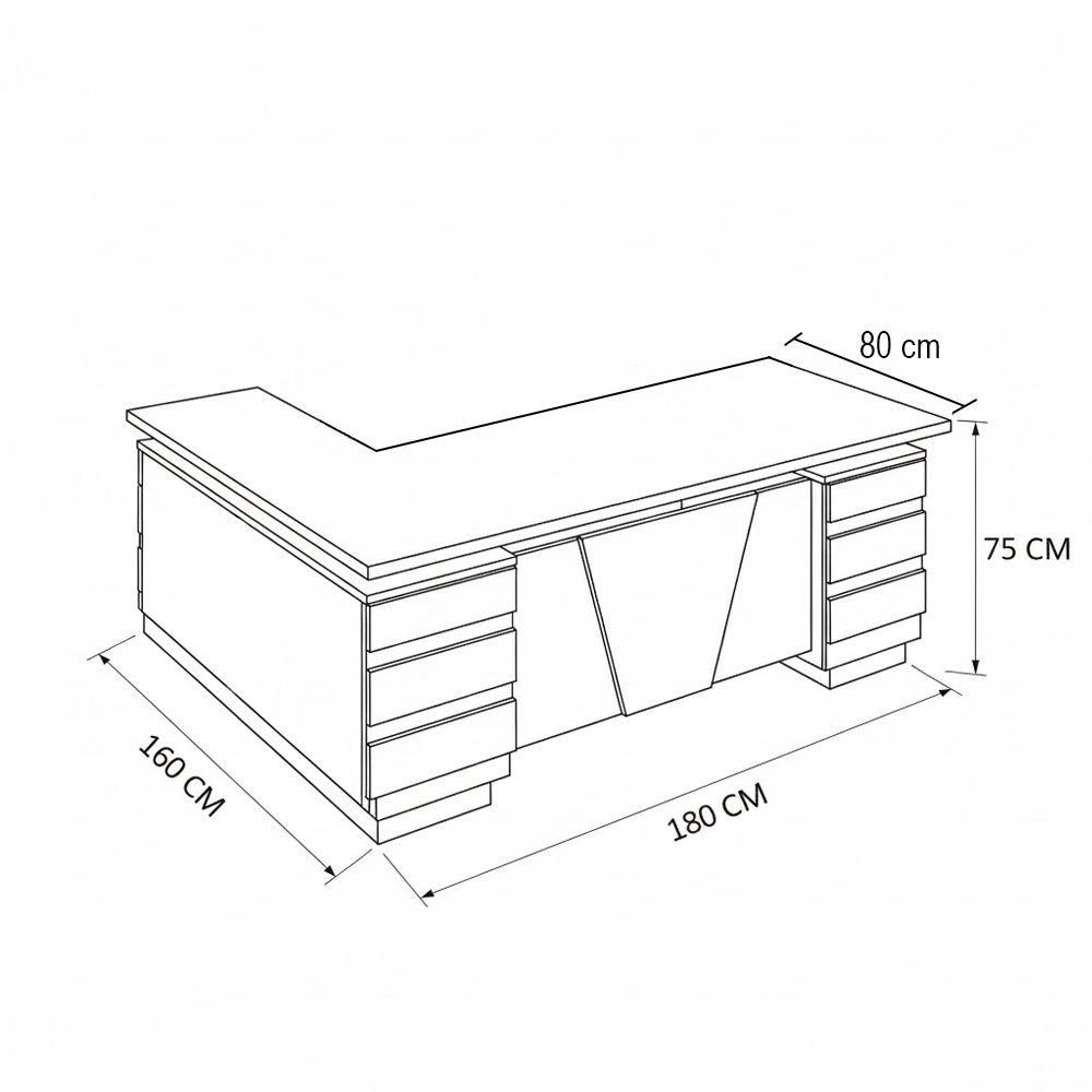 خامة المكتب: خشب MDFعرض المكتب: 180 سمعمق القرصة: 80 سمالسايد: 80 سمعمق المكتب بالكامل (المكتب + السايد): 160 سمالارتفاع: 75 سمسمك القرصة: 36 مليمترسمك الأرجل: 17 مليمتركود اللون: بني (504) و أوف وايت (204)