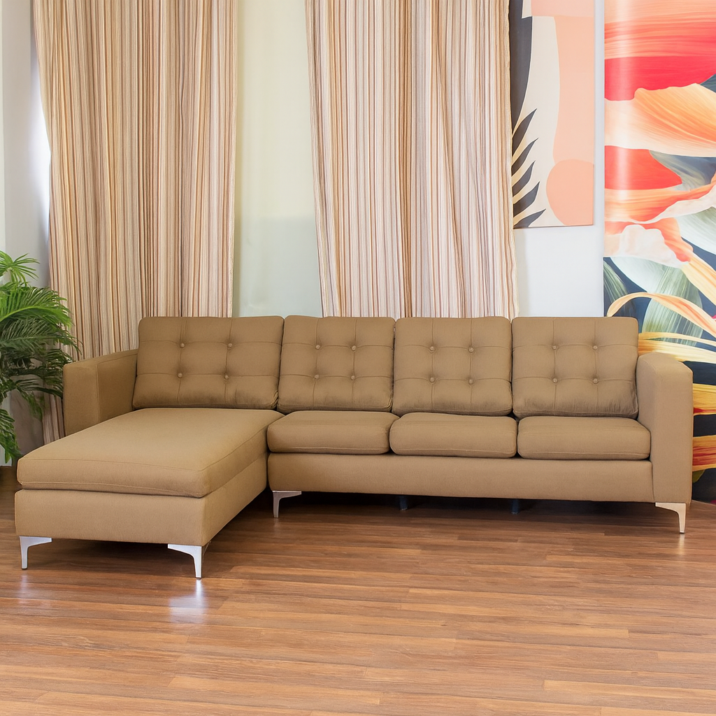ركنة منزلية مودرن على شكل حرف L (خشب MDF، أبلكاش) – اللون: بيج ناعم – ايزيل