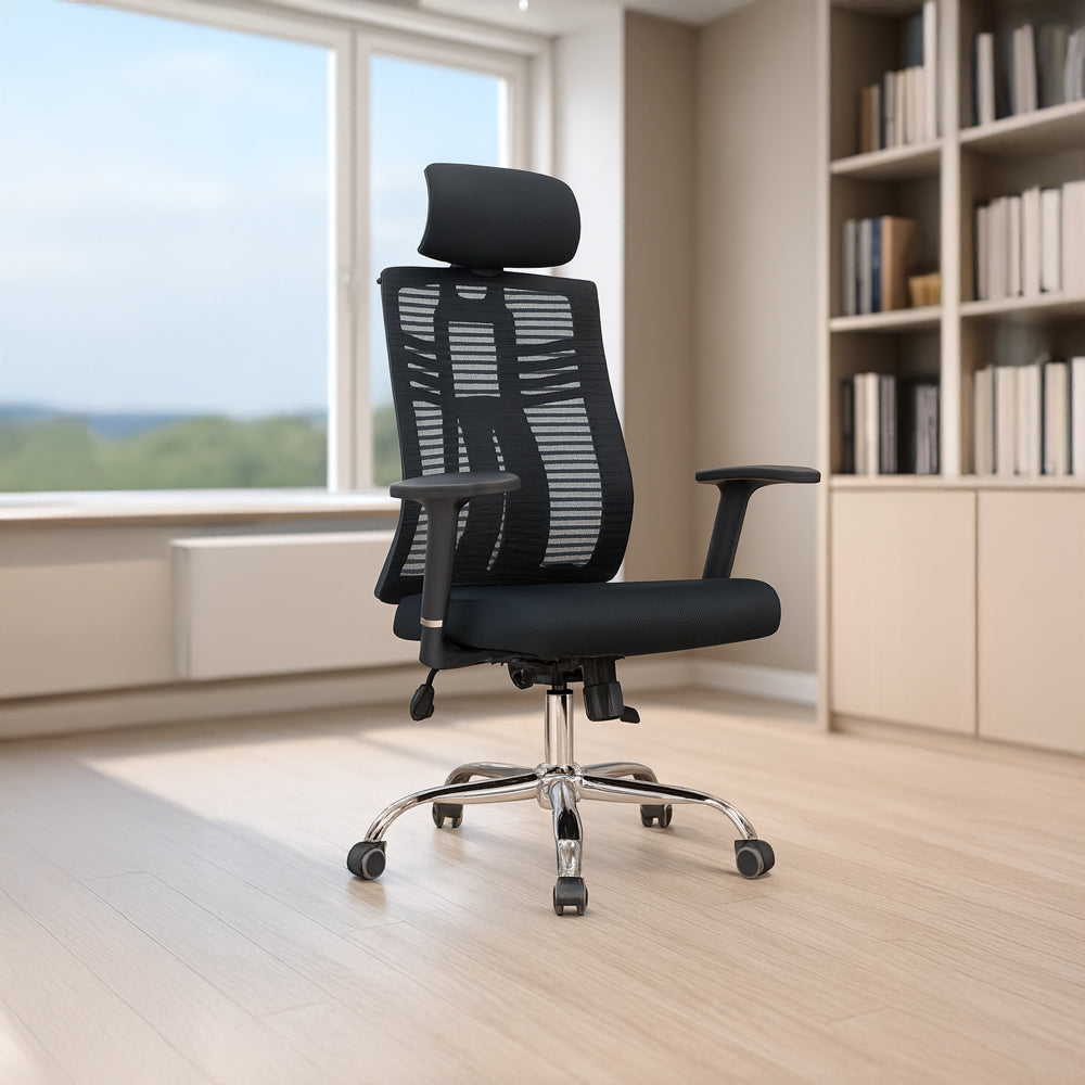 اللون: أسود الارتفاع: 124 سم العرض: 56 سم العمق: 69 سم خامة القماش: شبك خامة الحشو: إسفنج الآلية: ميكانيزم إرجاع مع خاصية القفل يحتاج إلى تركيب: نعم بلد المنشأ: الصين