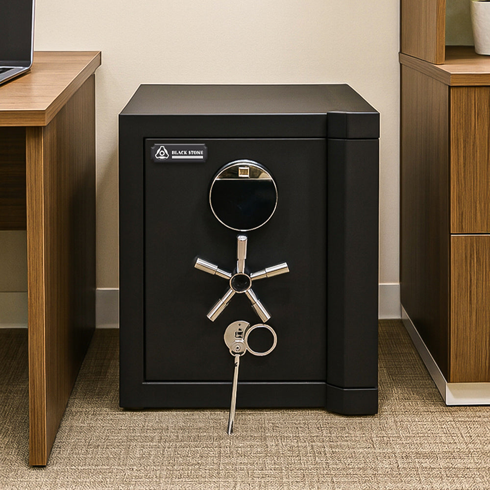 نظام غلق ثلاثي (بصمة + أرقام ديجيتال + كالون بمفتاح بنكي معتمد).
