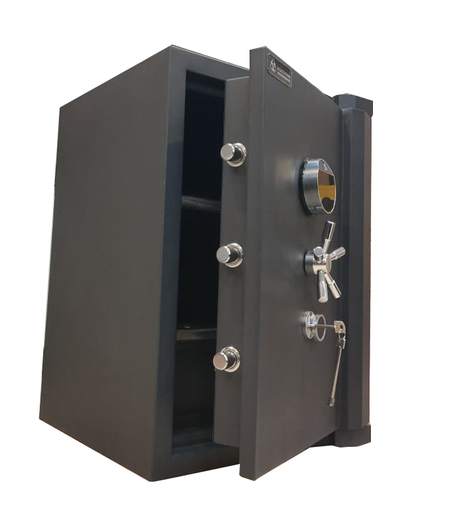 نظام غلق ثلاثي (بصمة + كود ديجيتال + كالون بمفتاح بنكي معتمد).