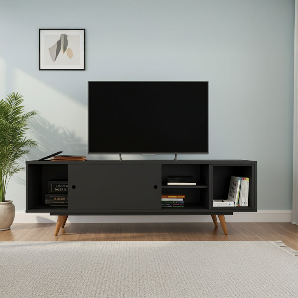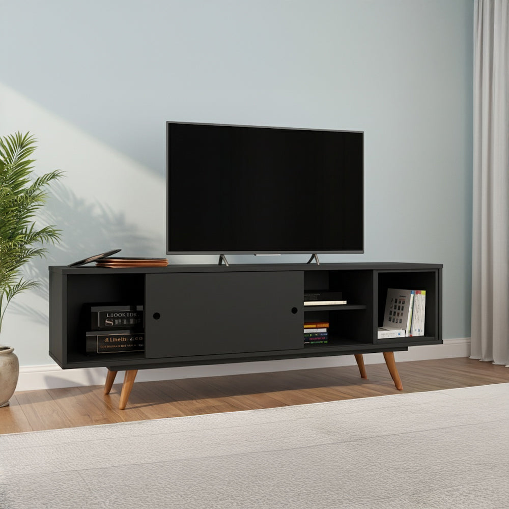 طاولة تلفزيون 160 × 38 × 55 سم – أسود وخشبي – AZ30060